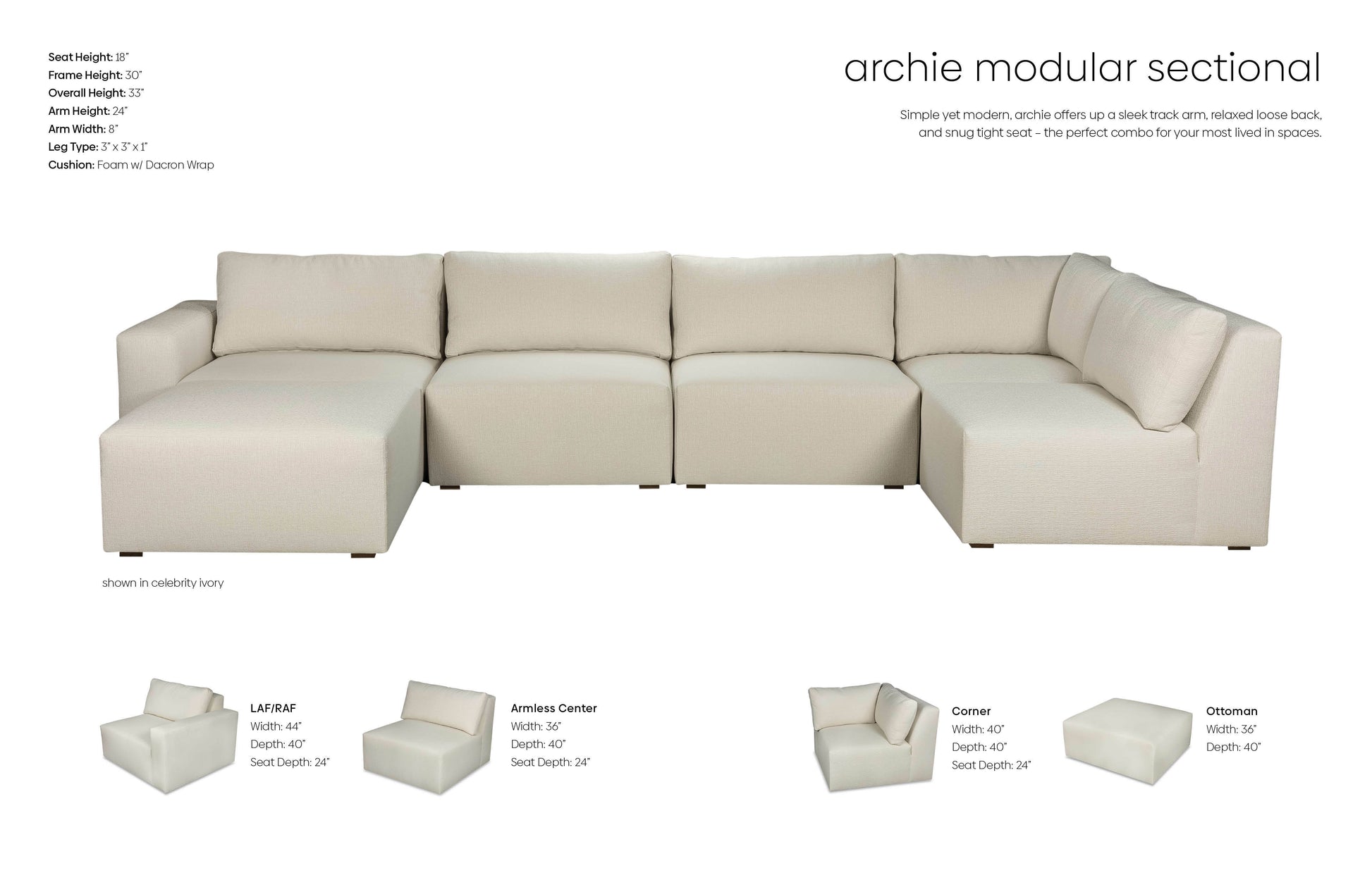 Simple yet modern, Archie offers up a sleek track arm, relaxed loose back, and snug tight seat – the perfect combo for your most lived in spaces.