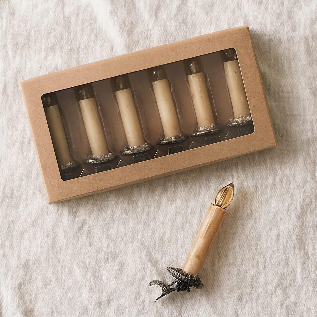 Each boxed set includes six glowing candle ornaments, delicately adorned with silver tinsel at the base for a subtle shimmer. The warm LED light gently flickers, perfectly mimicking the soft dance of real candlelight, casting a cozy, inviting glow throughout your holiday setting.