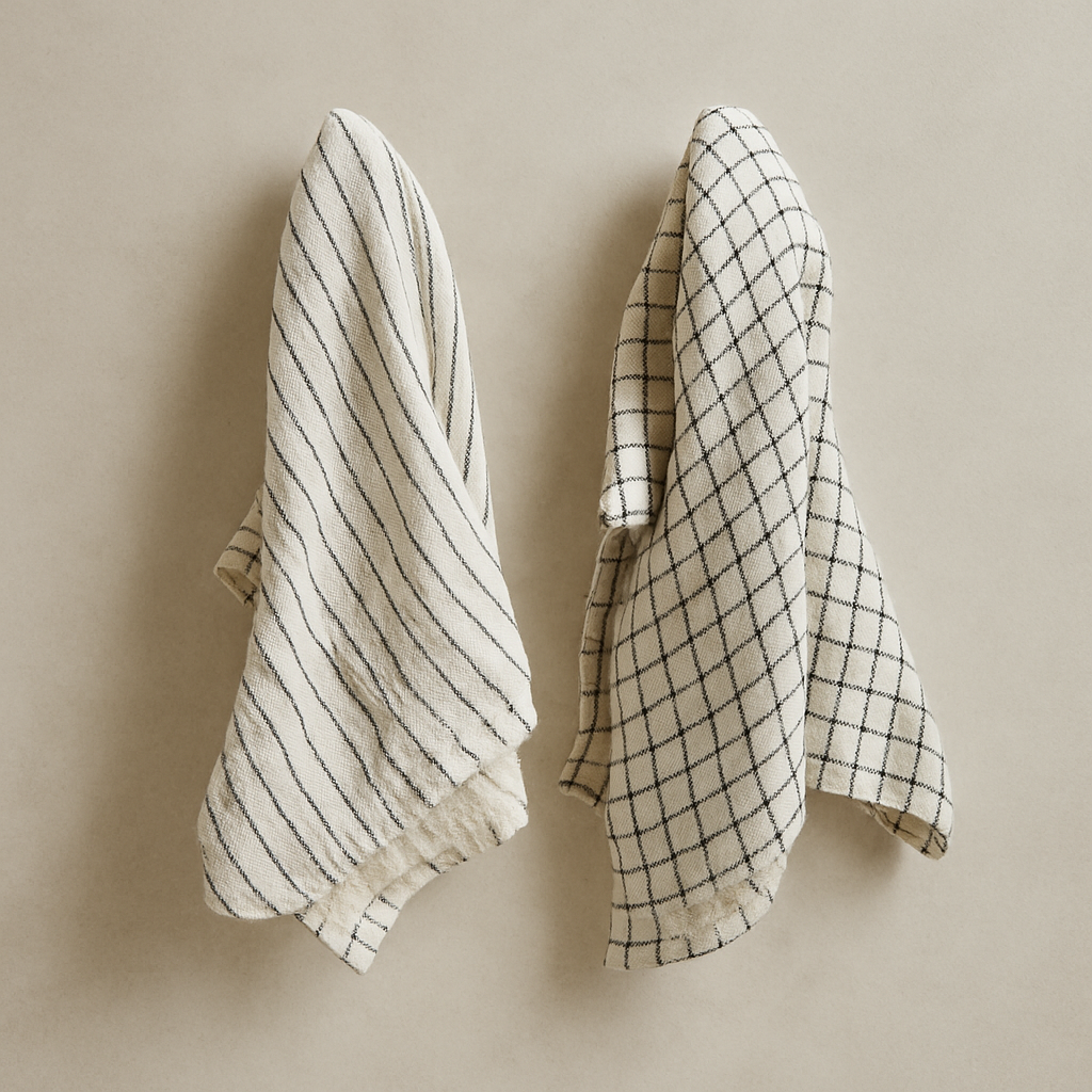 For keeping your kitchen neat and tidy these charming tea towels are a must. 28"L x 18"W Cotton Tea Towel w/ Grid/Stripes Pattern, Natural & Black, 2 Styles.