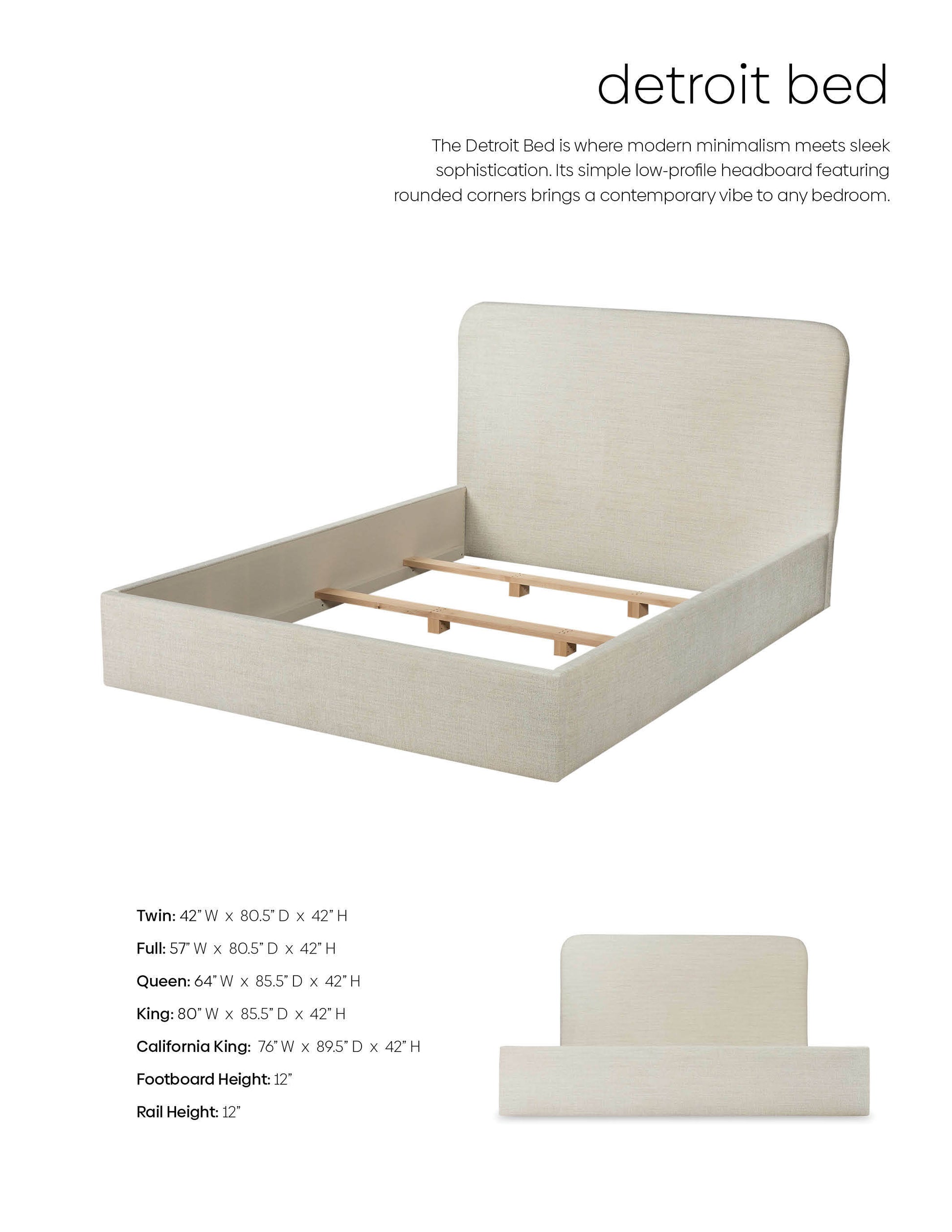 The Detroit Bed is where modern minimalism meets sleek sophistication. Its simple low-profile headboard featuring rounded corners brings a contemporary vibe to any bedroom.