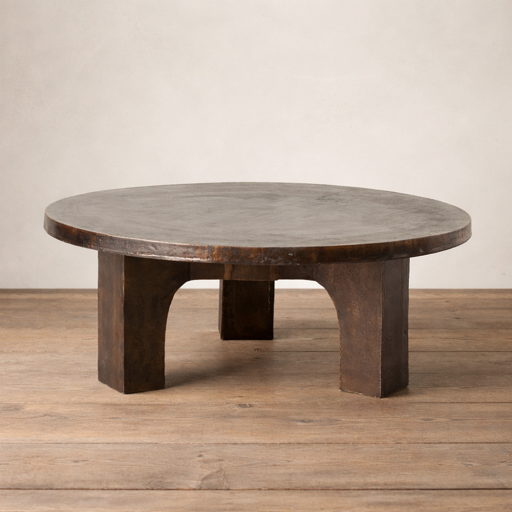 Grounded, sculptural, and quietly bold, our Iron Round Coffee Table is a statement piece that brings depth and intention to any living space—indoors or out. Inspired by Brutalist design, its low, solid form and mixed proportions create a sense of movement and presence, while the antique rust finish reveals subtle swirls of color that feel both timeworn and artful.