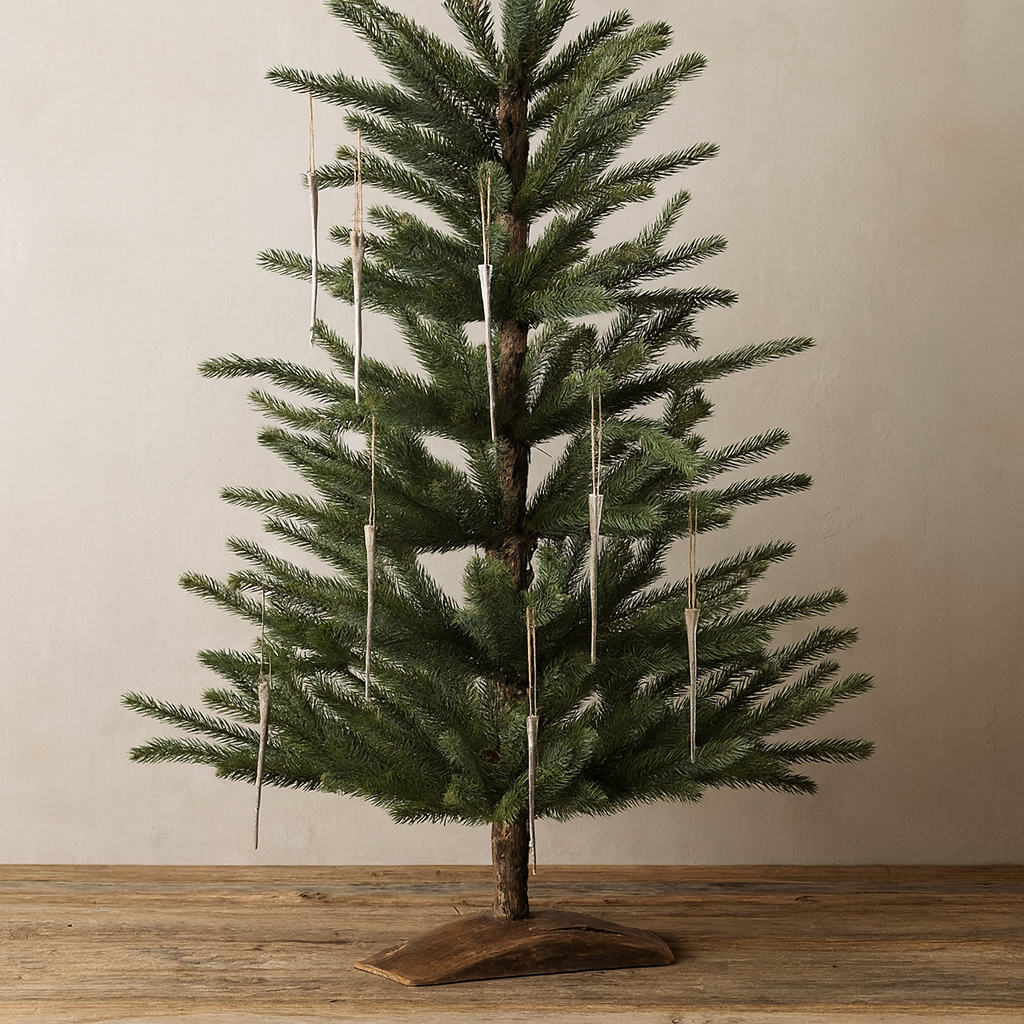 Ranging in size from 5 to 7 inches, these ornaments gracefully reflect the twinkle of nearby lights, adding understated elegance to your tree or holiday garland. Their elongated, organic shape captures the essence of nature’s own artistry; simple, timeless, and effortlessly refined.