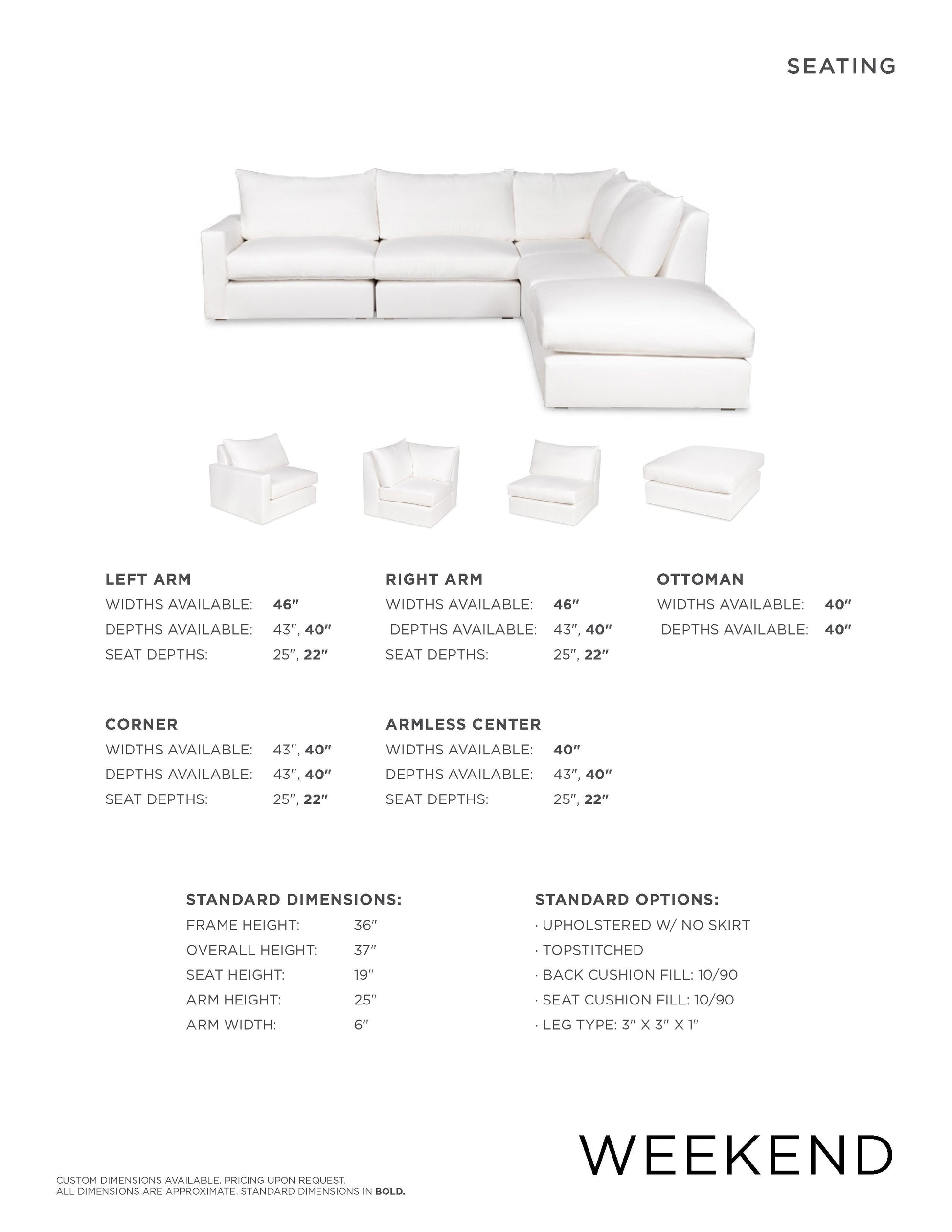 Pricing reflects cost of using the UD Favorites Fabric Collection. Pieces are made to order. If using a basics line fabric, piece can be delivered in approximately 6-8 weeks. All pieces can be custom made from any of the hundreds of fabrics in our selection for an additional cost depending on grade of fabric and longer lead time. Multiple leg options and wood finishes available for select pieces.